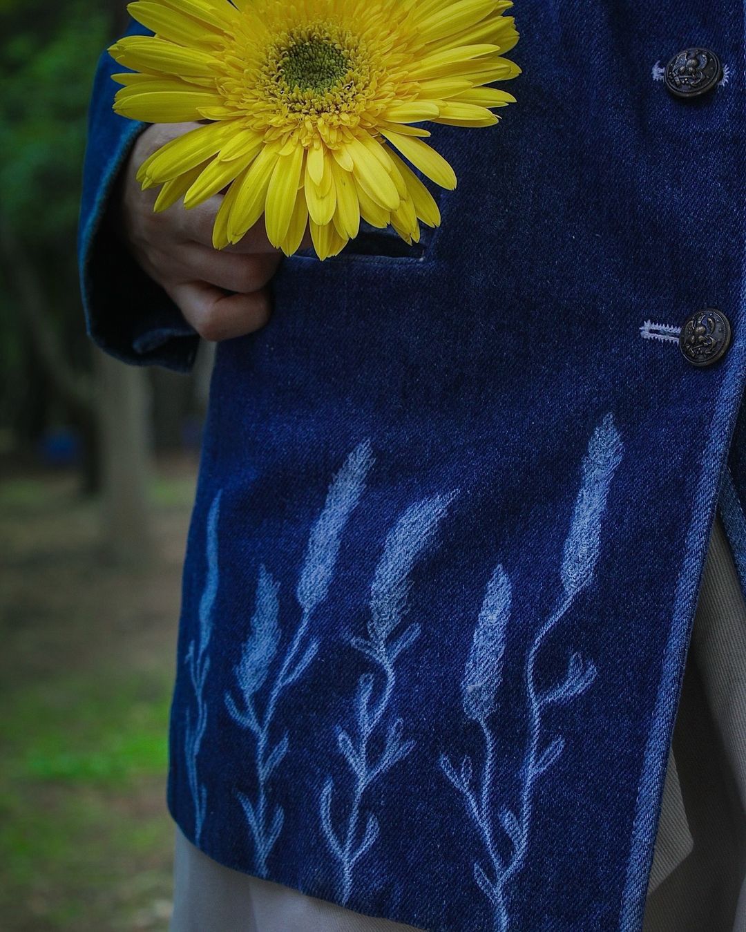 El blazer «Sueños Lavanda» es una pieza exclusiva que forma parte de nuestra segunda colección «Mensajes de las Flores». Este saco de mezclilla vintage es una de la 5 piezas únicas de la colección, diseñado para transmitir la esencia de las flores y la dualidad entre la naturaleza y la parte humana.