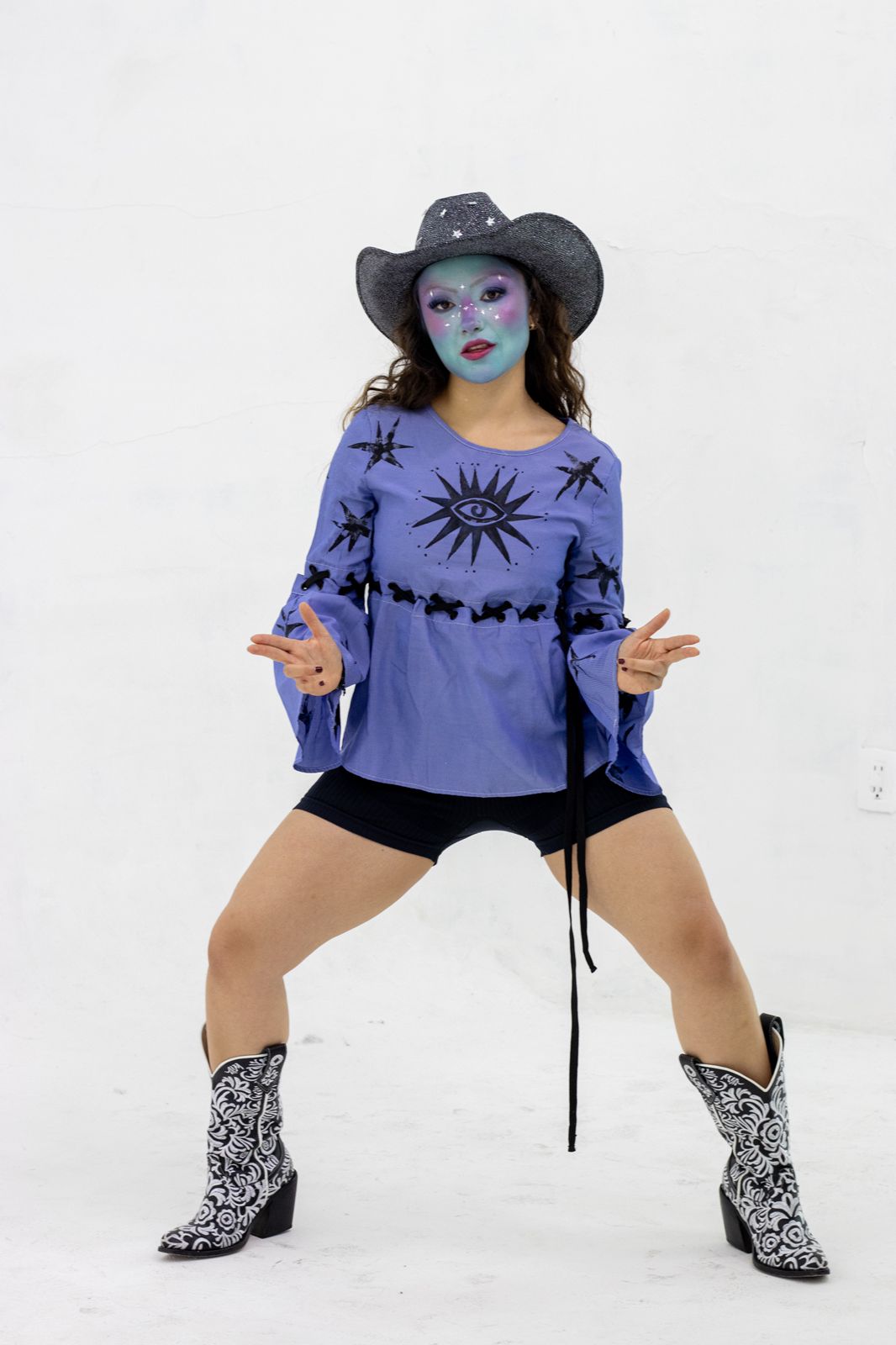 Blusa hecha a partir de materiales reciclados. Pieza parte de la colección ‘Polvo de Estrellas’.