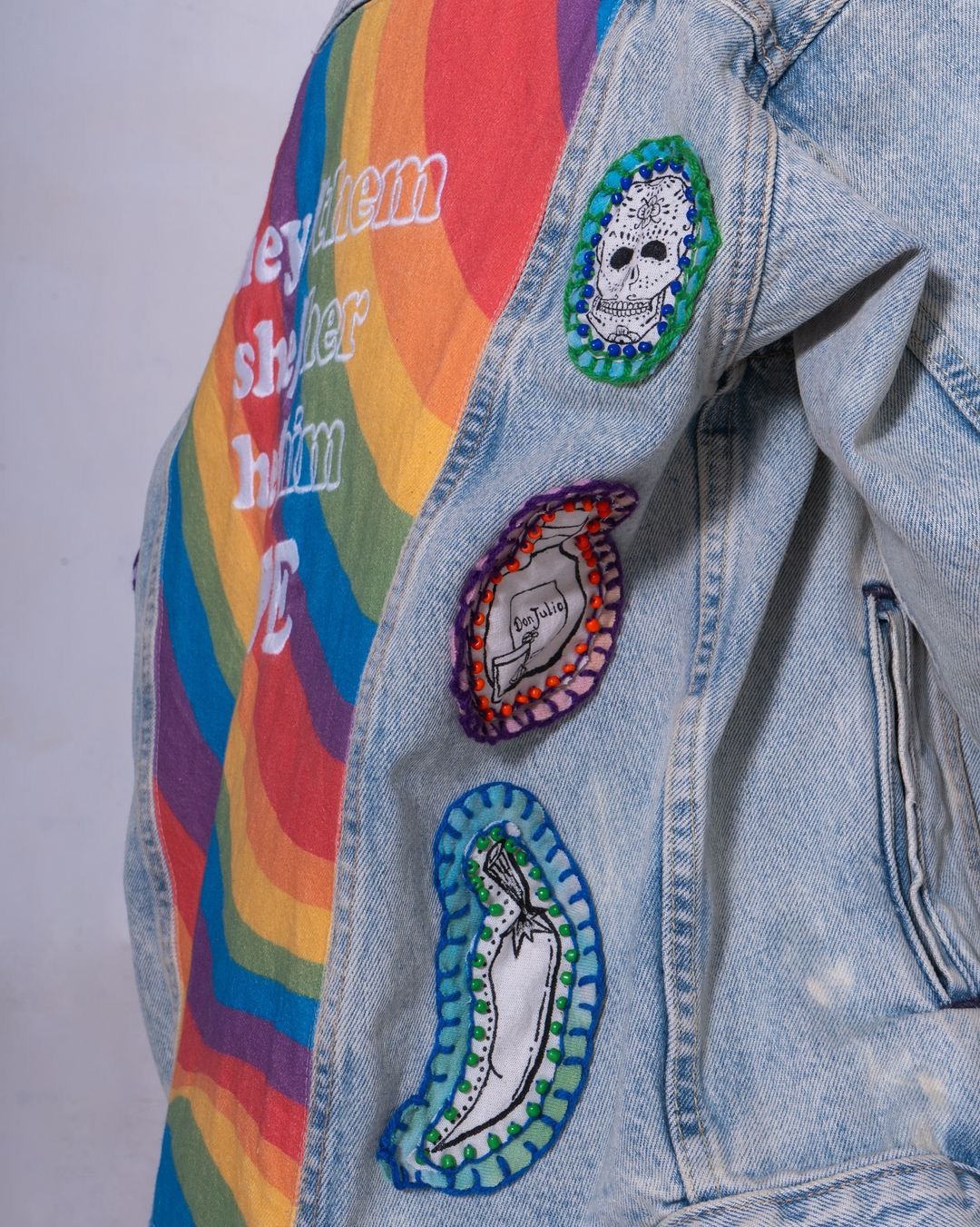 «Chamárrame» es una pieza exclusiva de nuestra Colección Calandria, cuya temática es «La homosexualidad no es una moda». Esta prenda es una de las 4 piezas únicas de la colección, diseñada para celebrar la diversidad y el orgullo LGBTQ+.